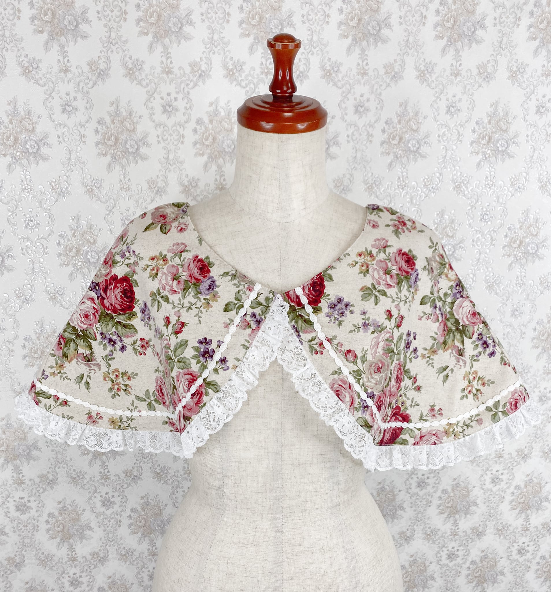 ロザリーワンピースと同じ生地を使用し、薔薇柄が美しいリバーシブルケープになります。