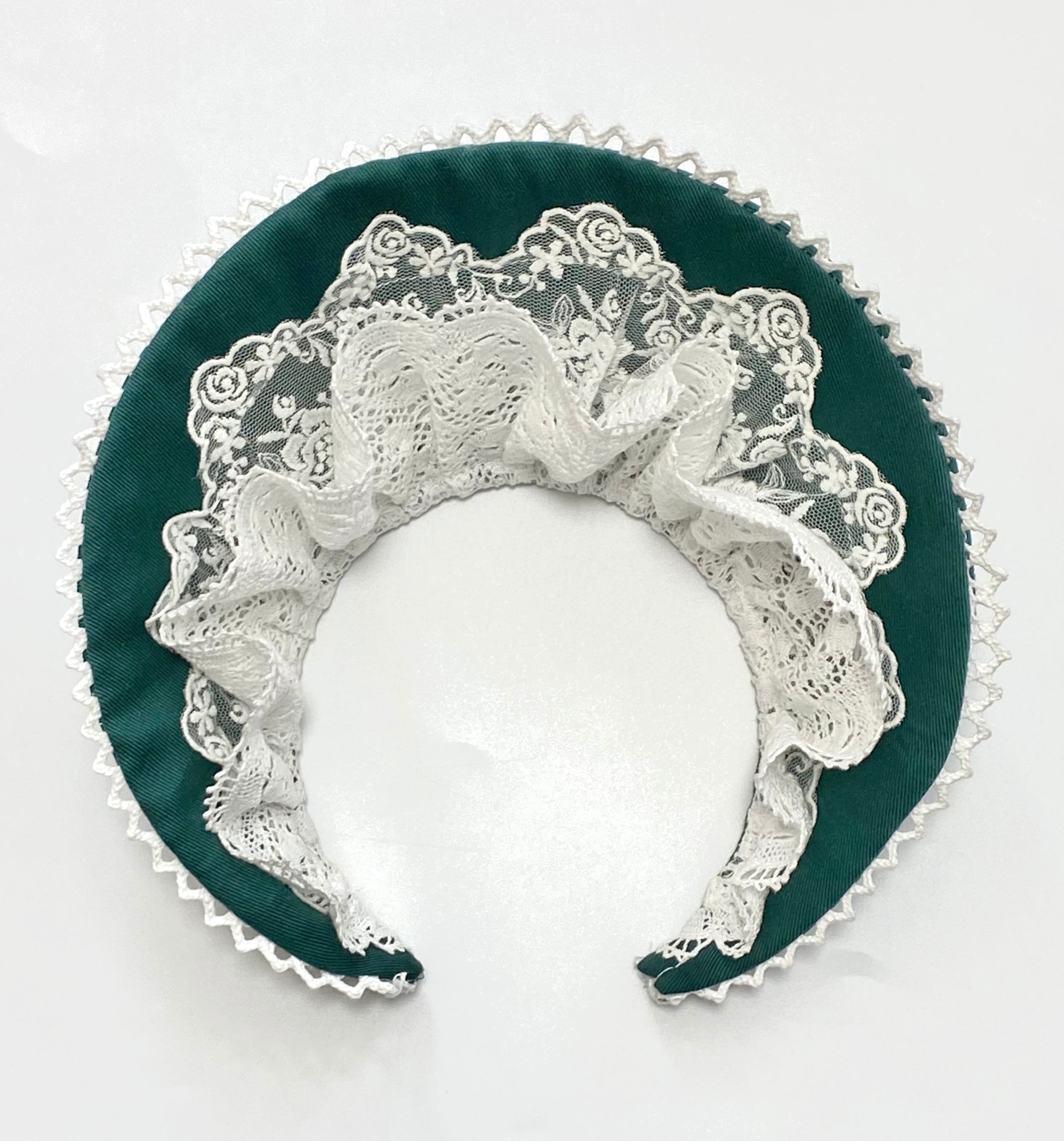 前後を逆にしてつけると控えめなボンネットのように着用していただくこともできます。