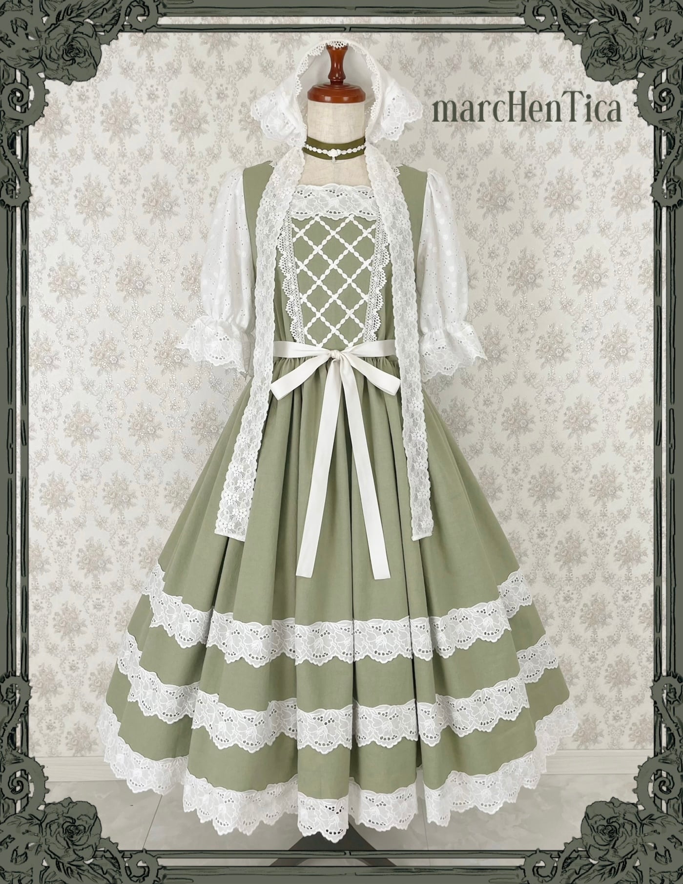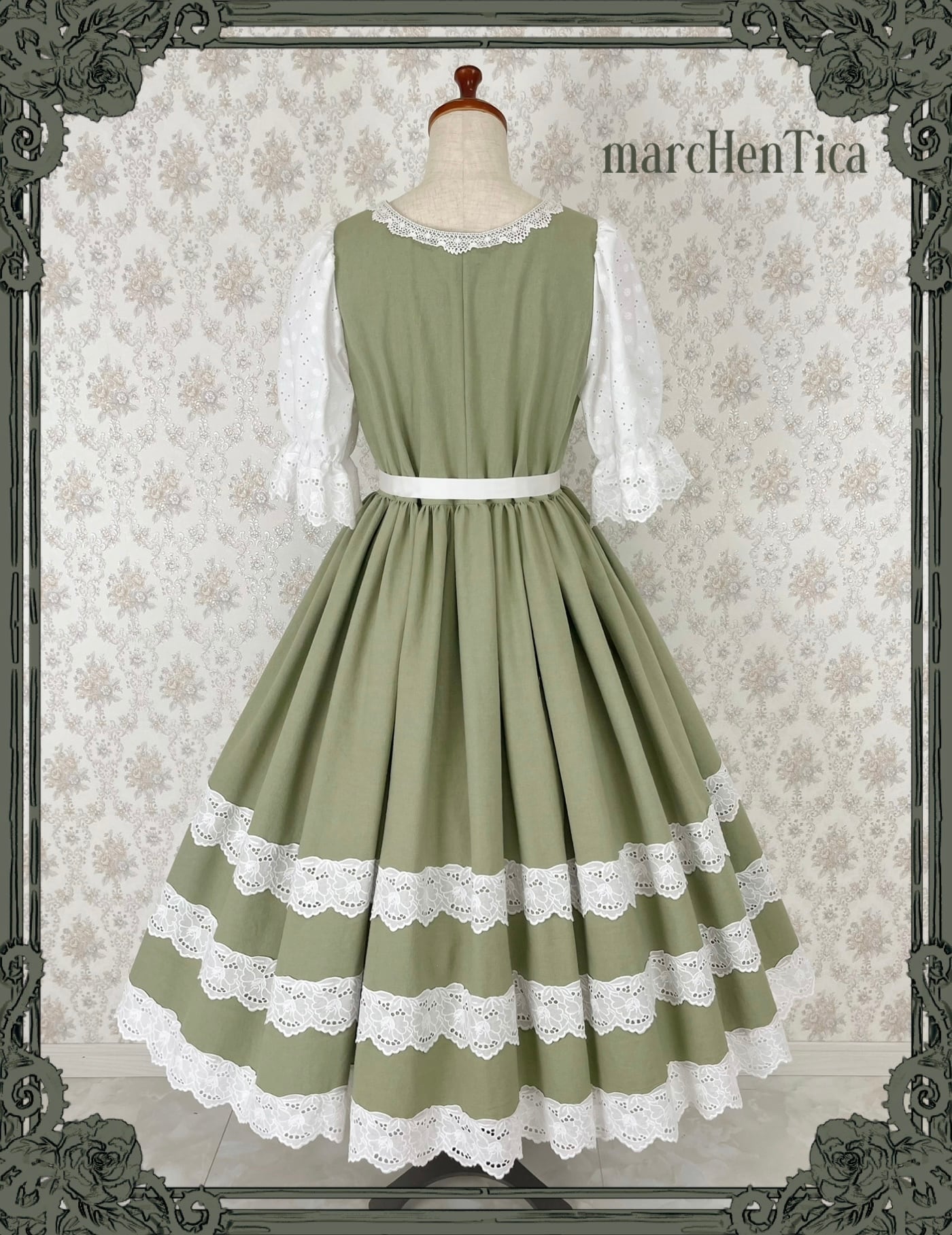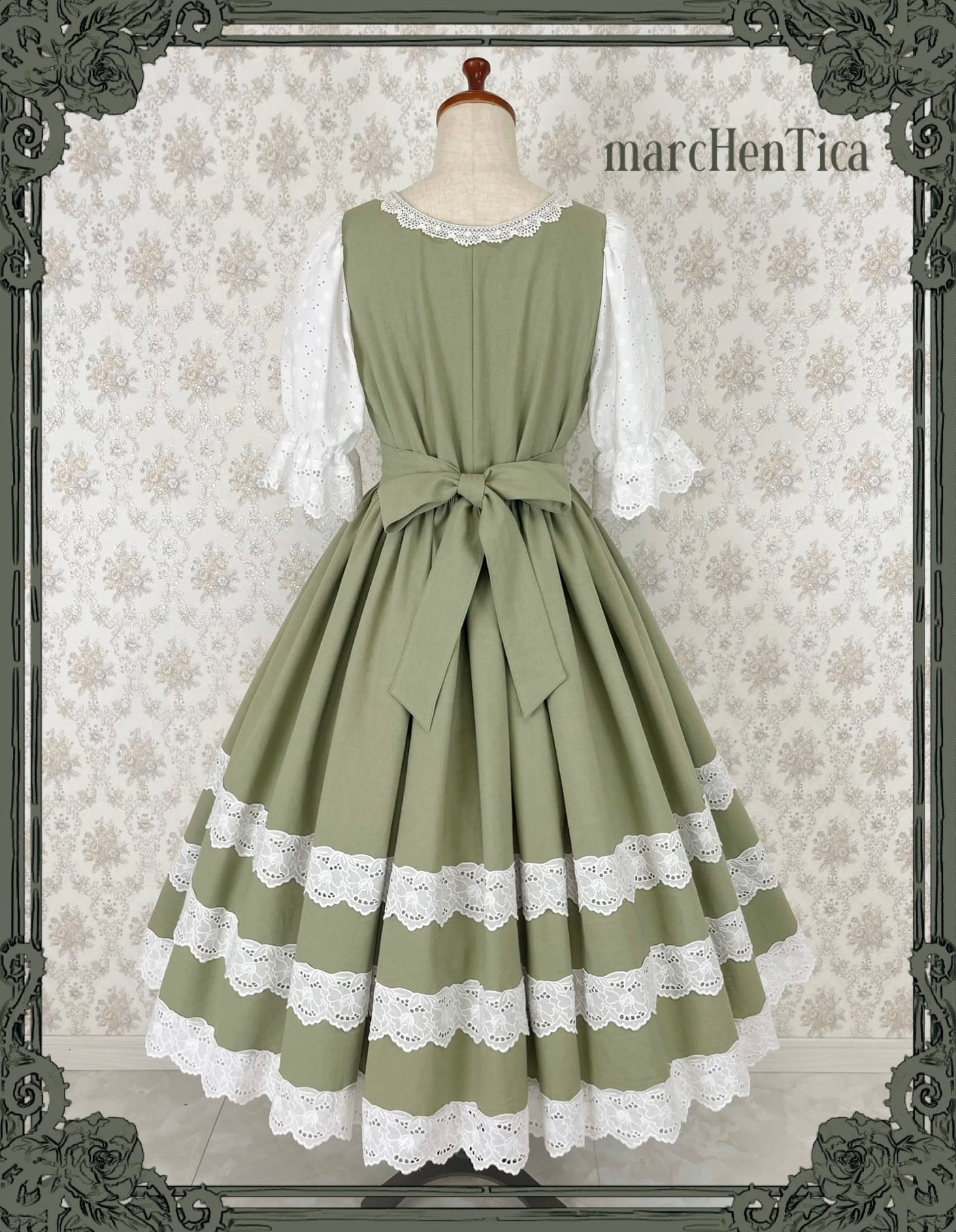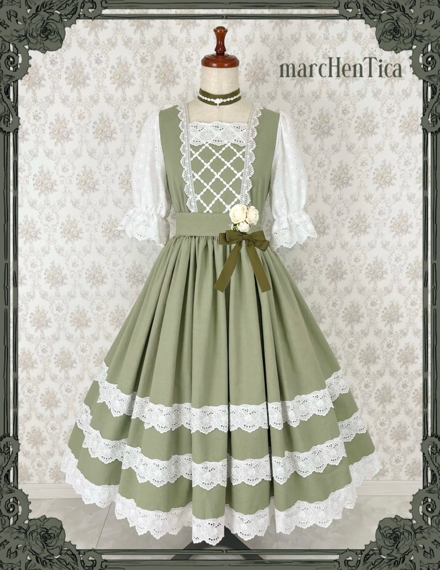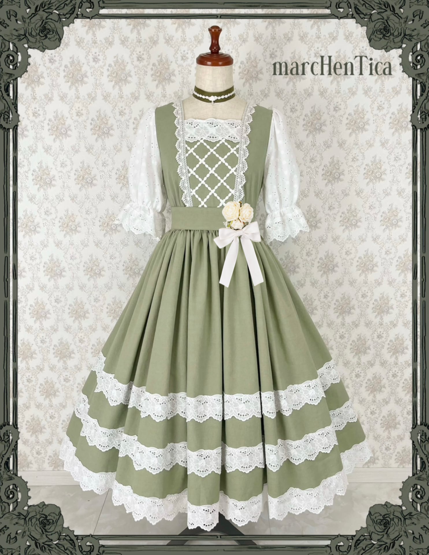 「お嬢様が町娘に扮して、下町へお忍びでお出かけする物語」をテーマに、気品と素朴さをあわせ持つ、クラシカルで可憐なワンピースです。