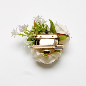 ローズフラワークリップ&コサージュは薔薇の造花に可憐な小花を使用した華やかなクリップ&コサージュピンです。背面にはクリップとコサージュピンがついており、お洋服の胸元や頭物などに合わせてご使用することも可能です。 カラー展開はホワイト1色となっております。 ※商品はアトリエでのオールハンドメイドで制作しております。 ※受注生産となる為、納期は約1~2か月となります。 ※背面の金具のカラーが変更になる可能性もございます。 ※説明文をよくお読みのうえご購入をお願いいたします。