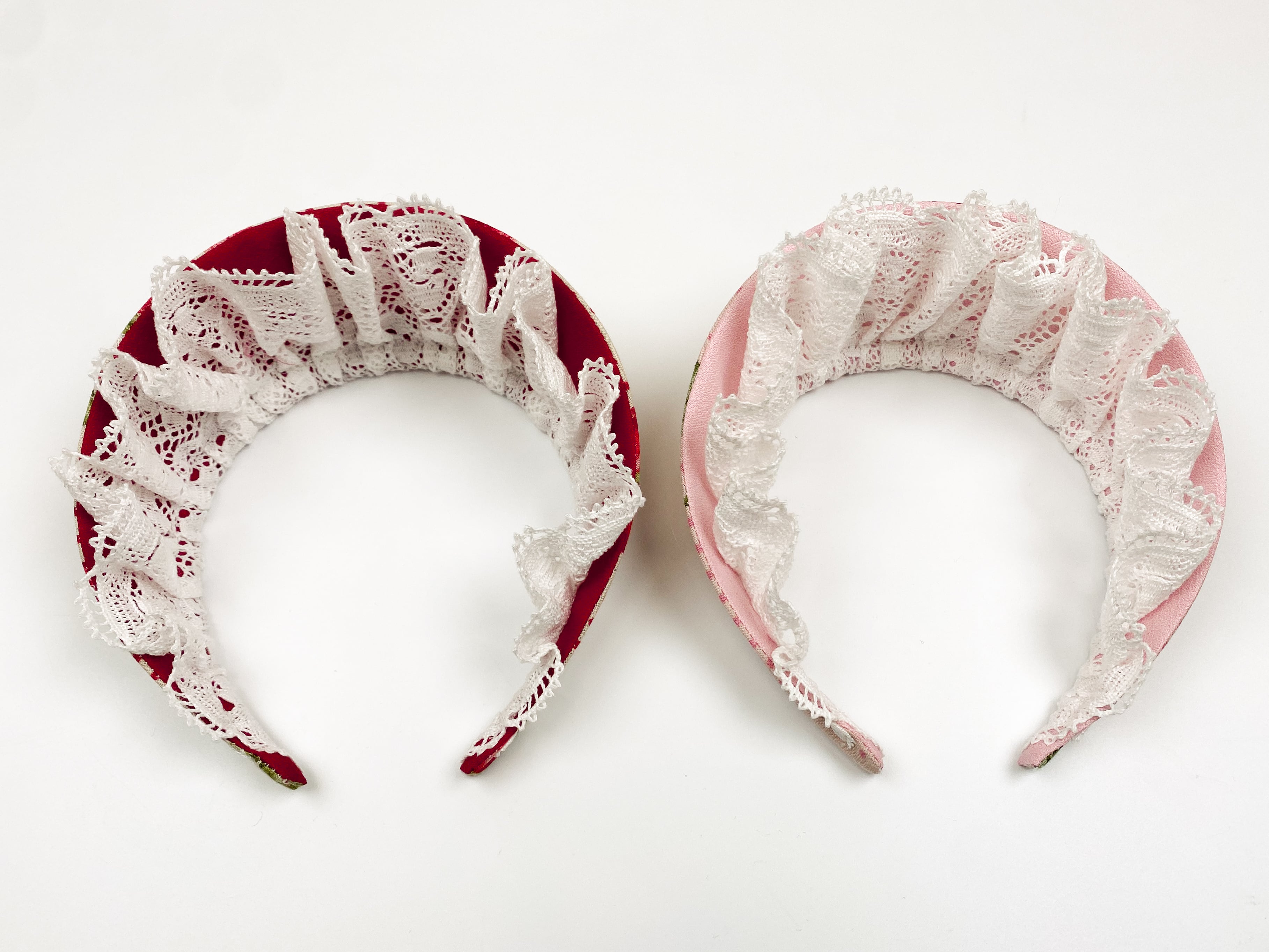 ストロベリーパフェココシニクカチューシャは、ストロベリーパフェワンピースの生地を使用したカチューシャです。前後で違う生地となっており、前後を逆にしてつけると控えめなボンネットのように着用していただくこともできます。 ※説明文をよくお読みのうえご購入をお願いいたします。 ※商品はアトリエでのオールハンドメイドで制作しております。 ※受注生産の為、納期は約1~2か月となります。