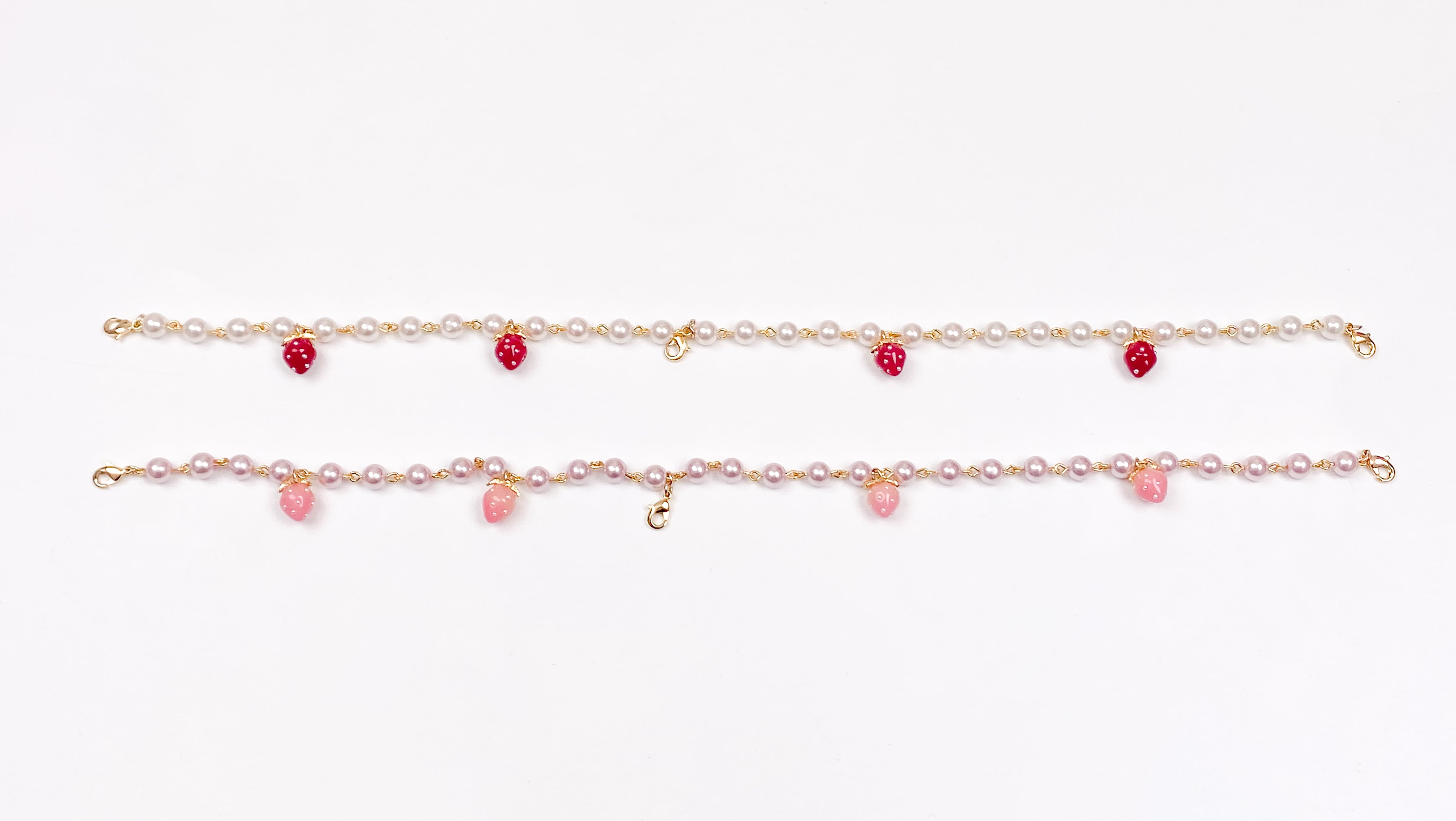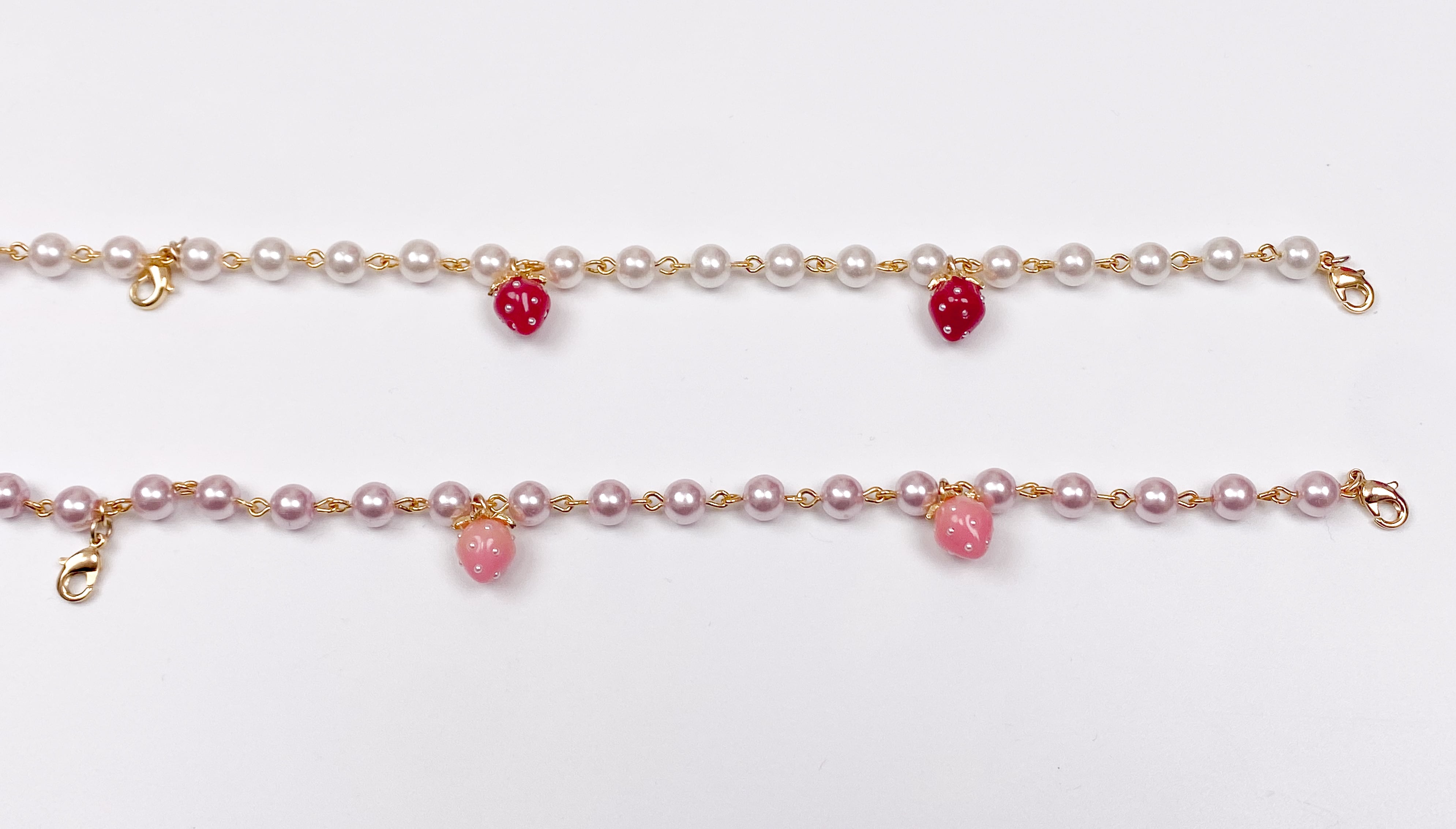 ストロベリーパールチェーンは、苺チャームにパールをあしらったチェーンです。ストロベリーパフェチョーカーやレースにつけてアクセントとしてご利用可能です。 ※商品はアトリエでのオールハンドメイドで制作しております。 説明文をよくお読みのうえご購入をお願い致します。