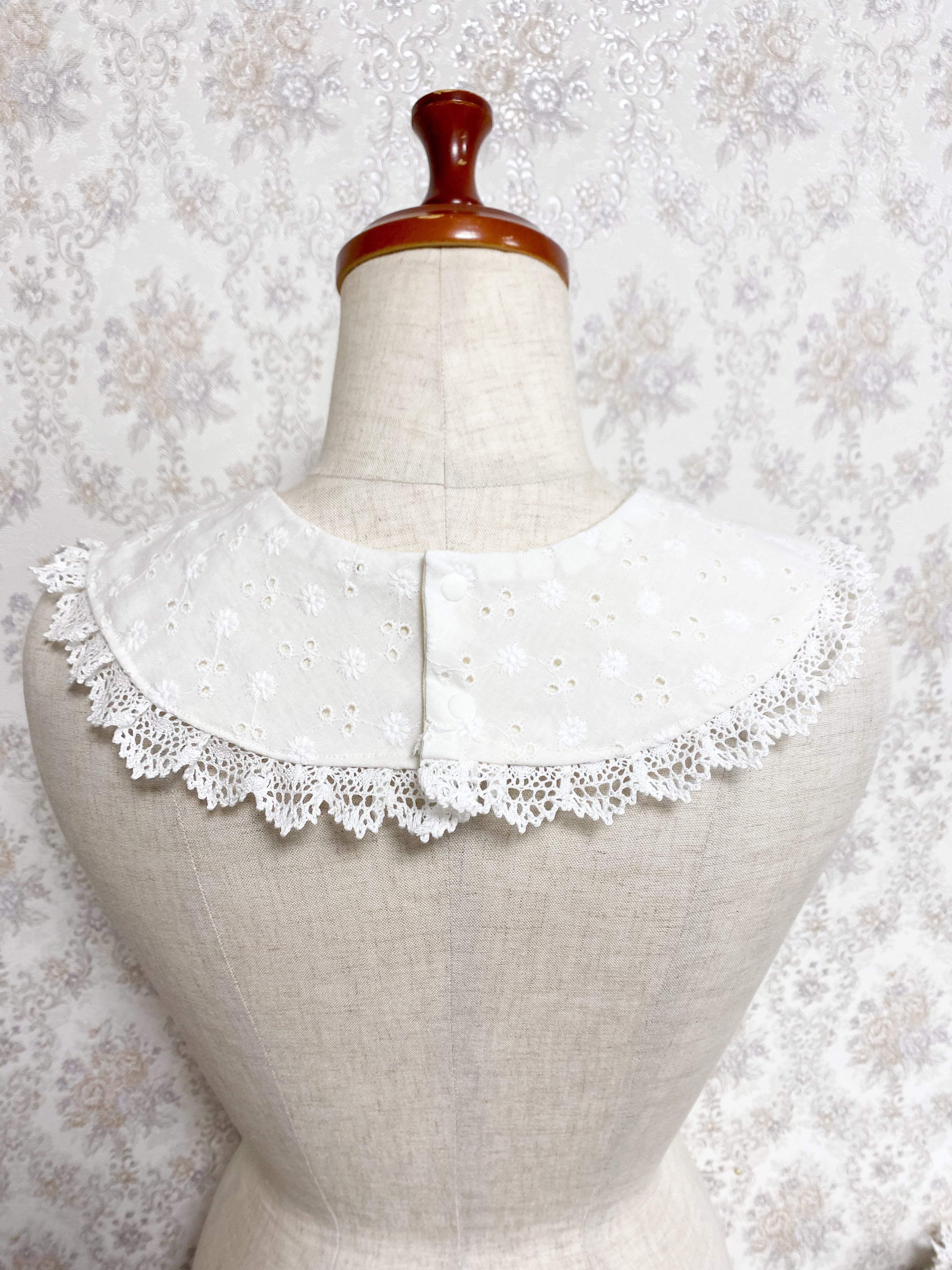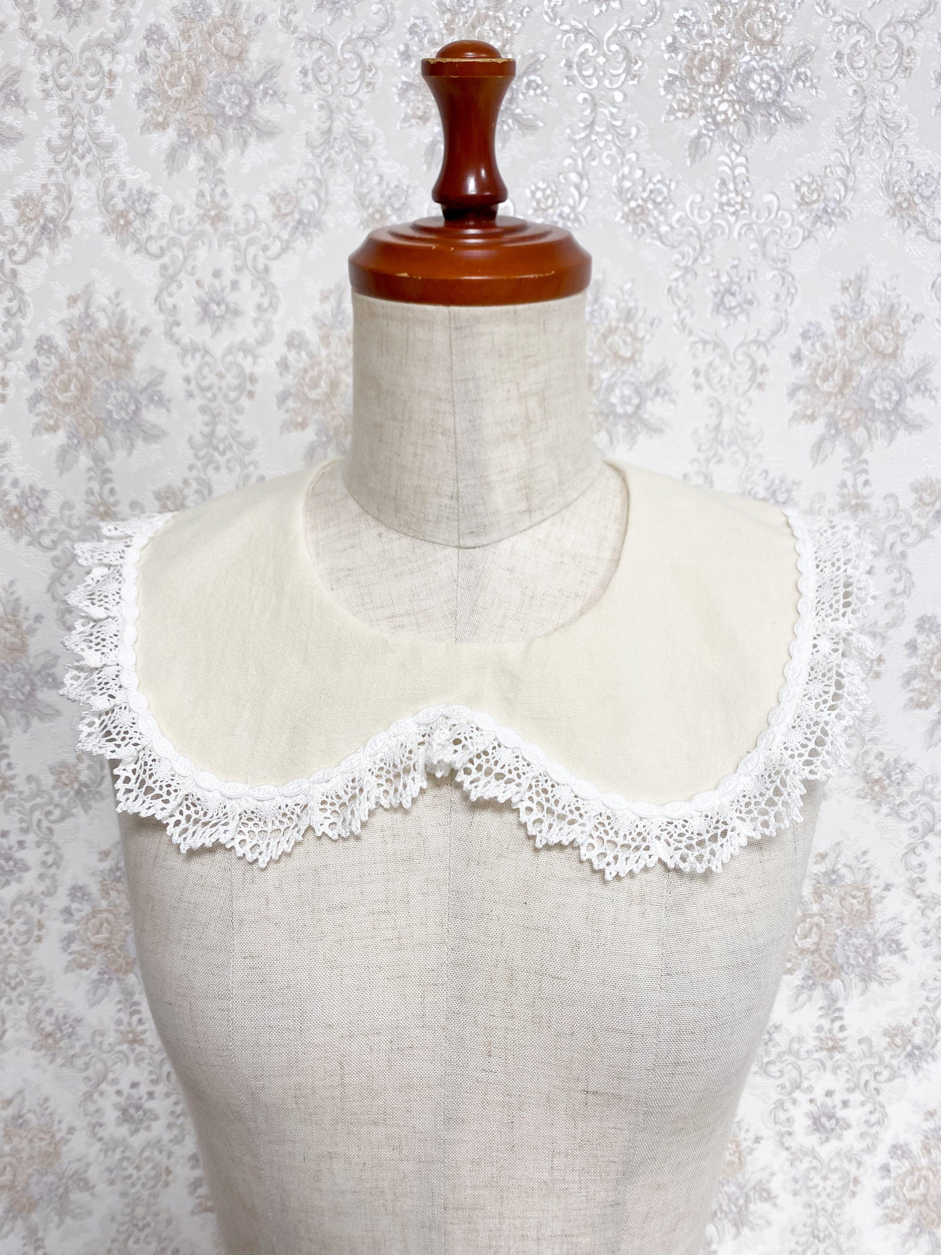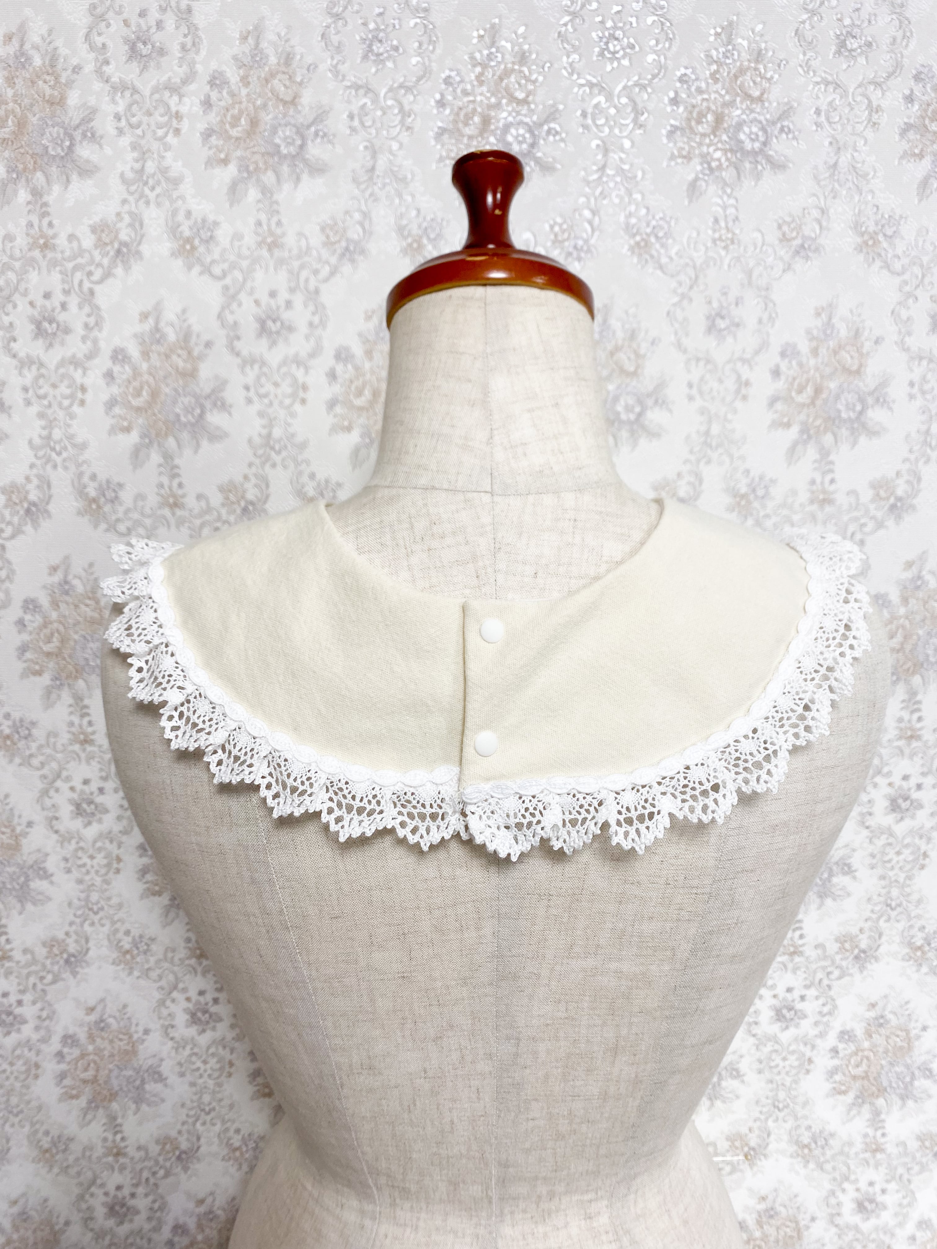 セントルミエールつけ襟はセントルミエールワンピースと同じ生地を使用したつけ襟です。 スナップボタンで取り外し可能なデザインになっています。 素材 表地:綿85% 麻15% 裏地:綿100% ※商品画像のセントルミエールケープは別売りです。