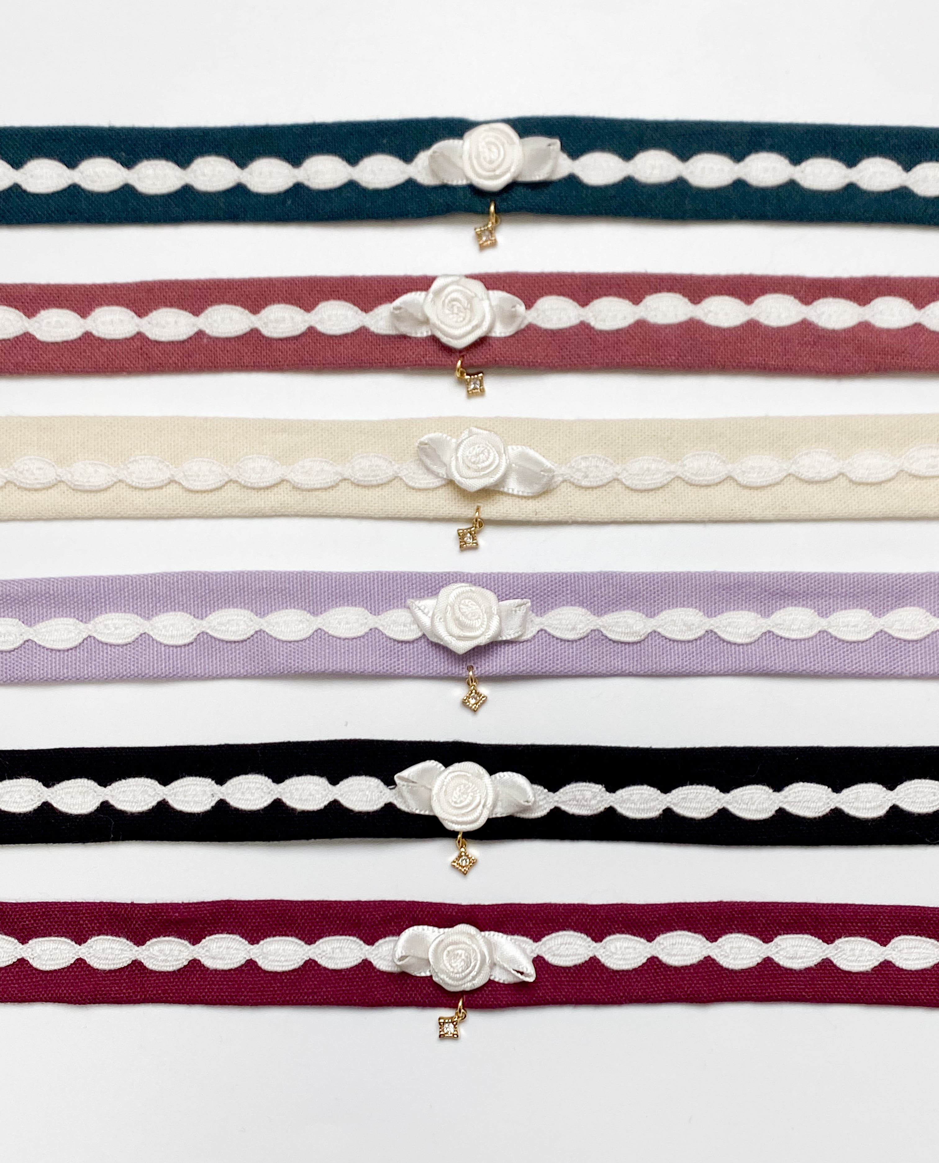 ホワイトローズチョーカーは、ヴィオラ・マリアンヌとセントルミエールに合わせ、ワンピースと同じ生地、レースをあしらったチョーカーです。ホワイトローズのアクセントが可愛いチョーカーです。