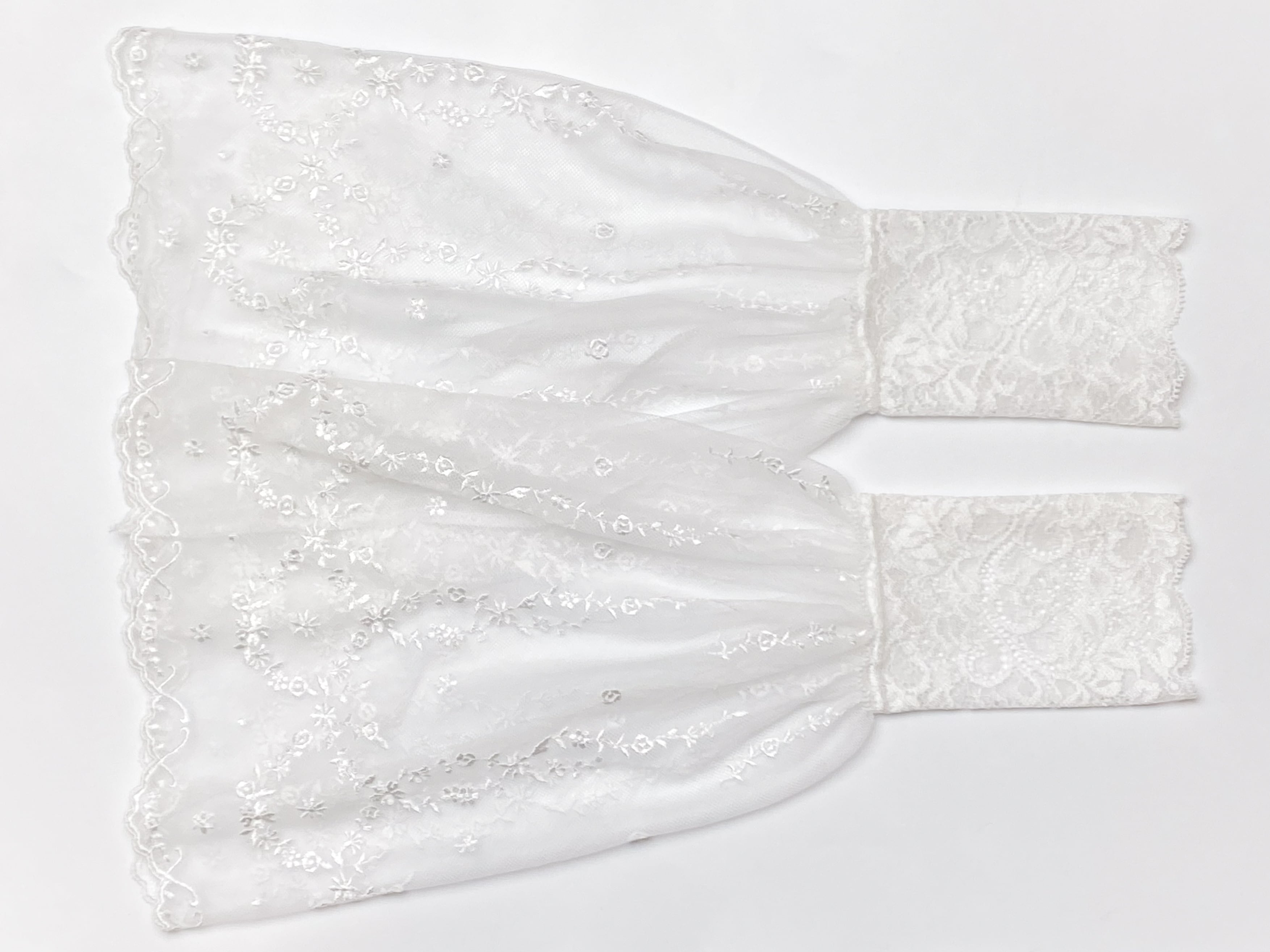 フリルレースが美しい付け外し可能な姫袖になります。カラーはスミレとホワイトの2色展開となり、それぞれヴィオラ・マリアンヌのセンタースカートに使用しているレースとなっております。