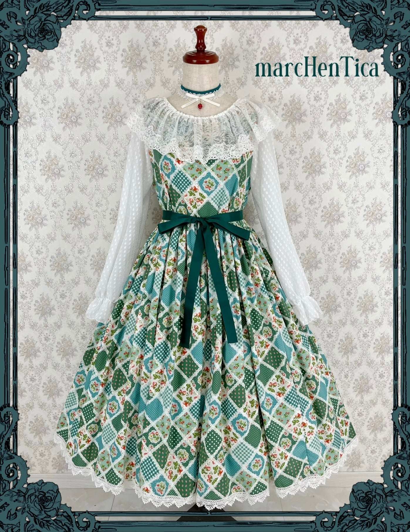 ミルフィーユドールチョーカーは、 ミルフィーユドールワンピースと共布生地を使用したチョーカーです。 はしごレースにリボンを通した、可憐なデザインとなっております。 別売のカメオチャームやいちごチャームを合わせれば、より世界観を演出できます。 【サイズ】 28cm+アジャスター/30cm+アジャスター 布地部分の幅 約2cm ※説明文をよくお読みのうえご購入をお願いいたします。 ※商品はアトリエでのオールハンドメイドで制作しております。 ※受注生産となる為、納期は約1~2か月となります。