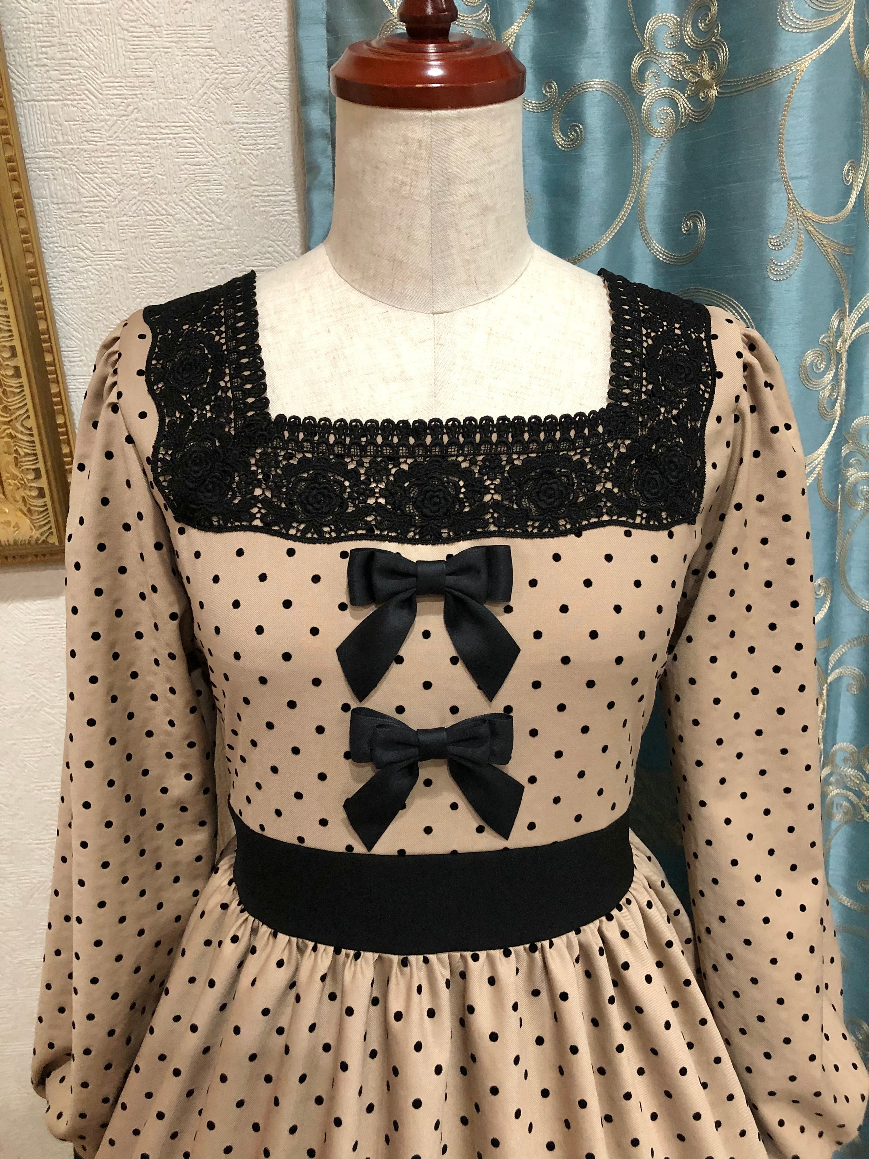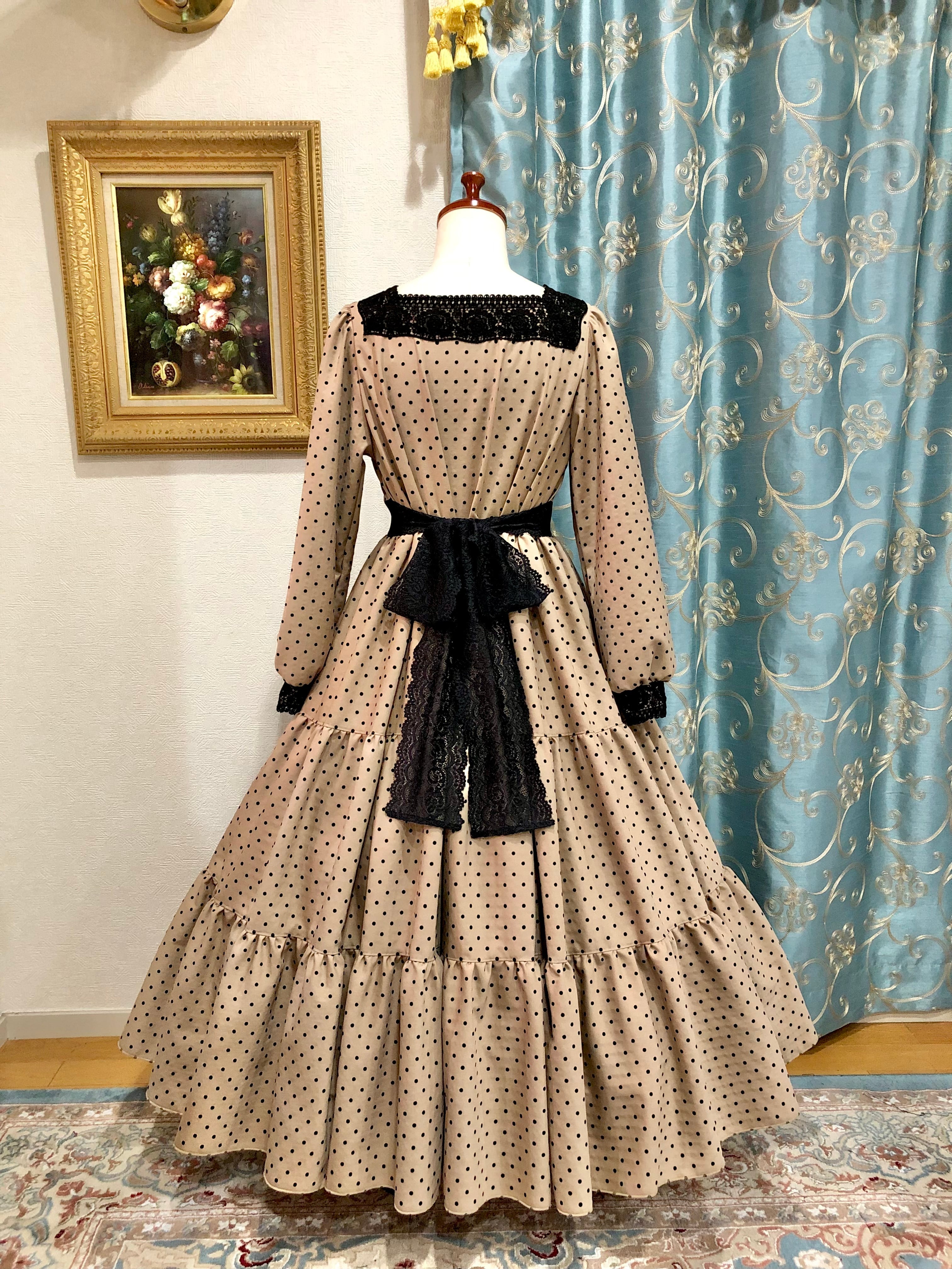 キャロラインワンピースは、タピオカミルクティーカラーのレトロな印象が可愛い3段ティアードワンピースです。