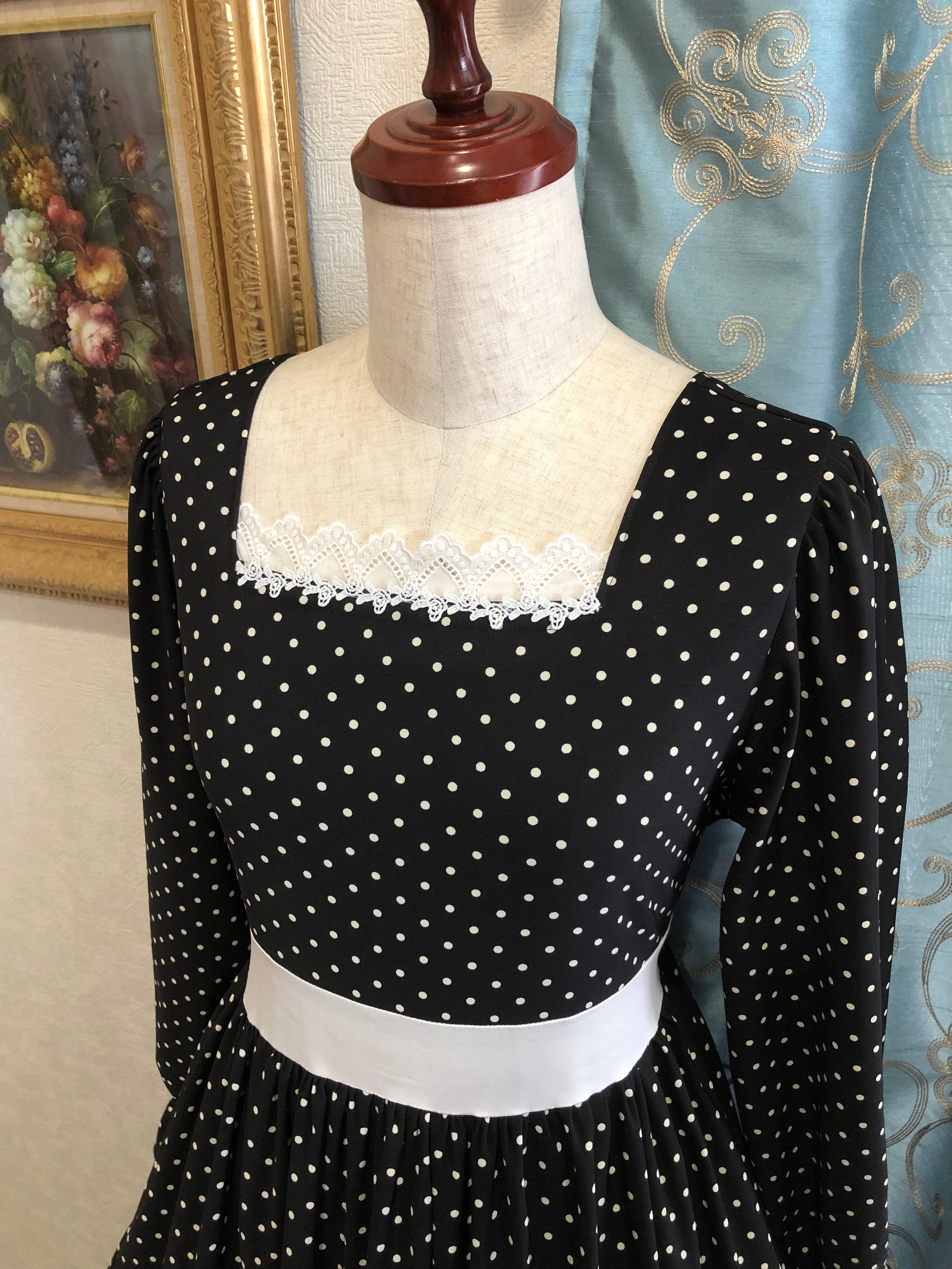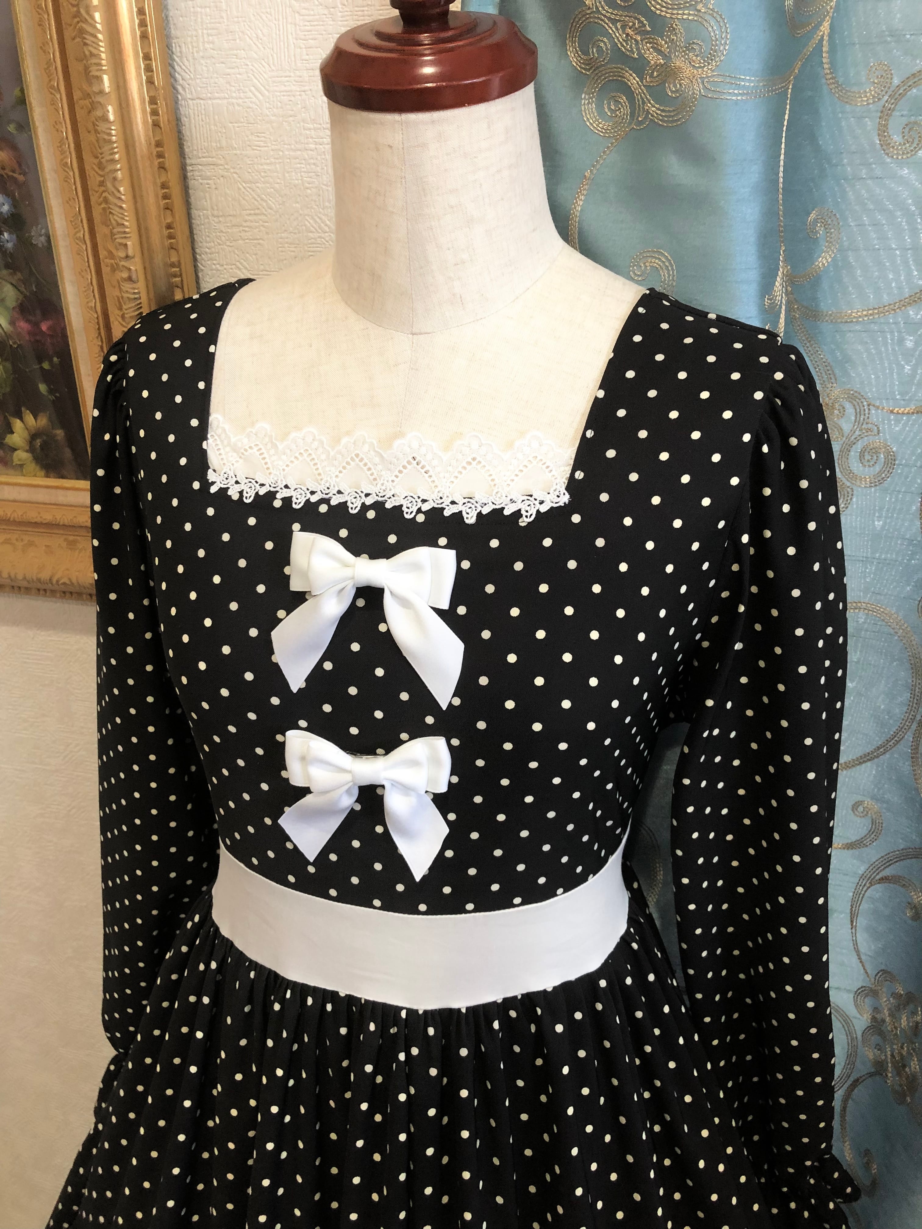 ブラックストロベリーワンピースは、黒地に白ドットが黒いちごを連想するレトロな印象が可愛い3段ティアードワンピースです。