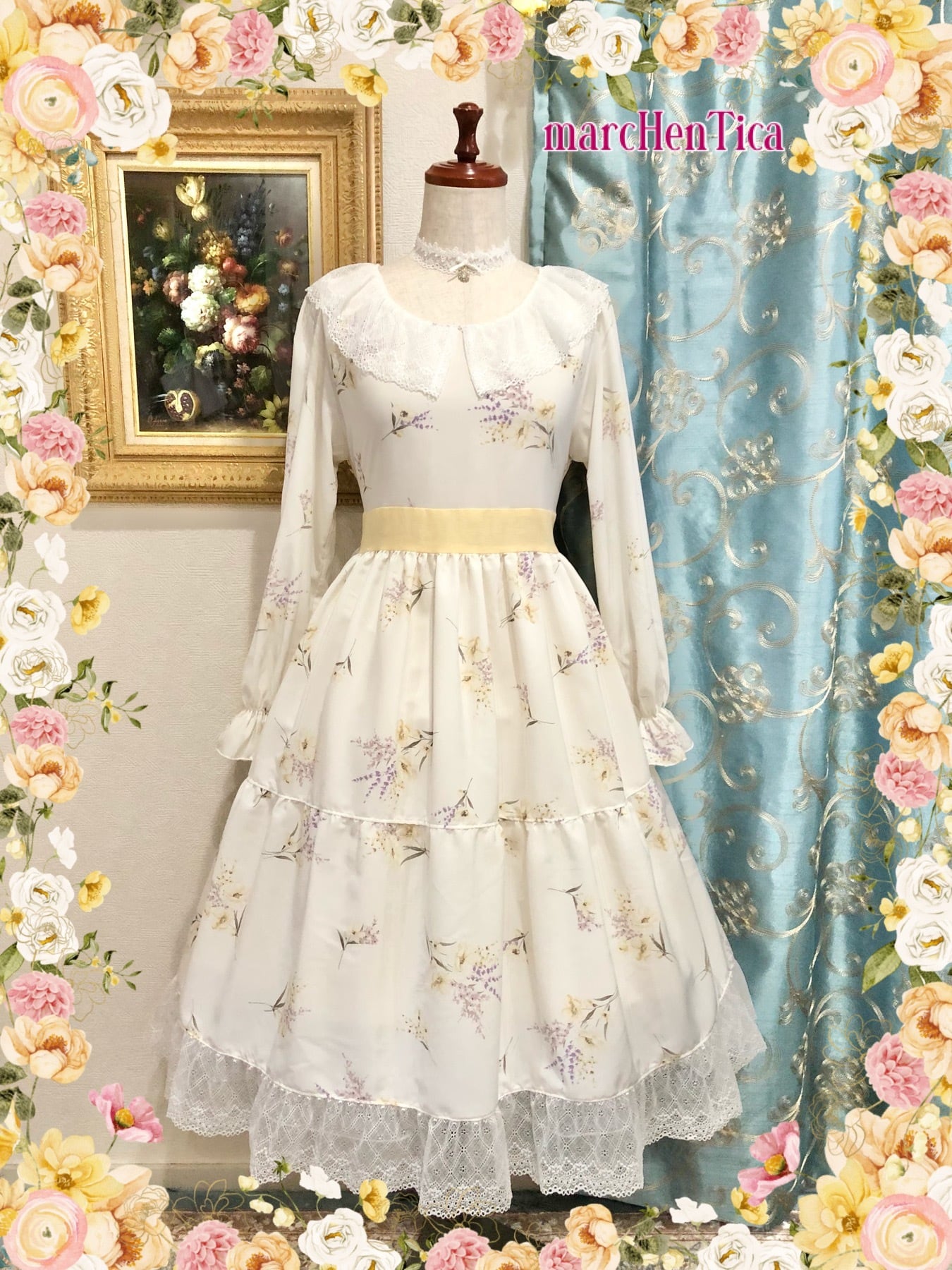 フローラワンピースは春のブーケ柄の生地と2段のティアードが可愛いワンピースです。