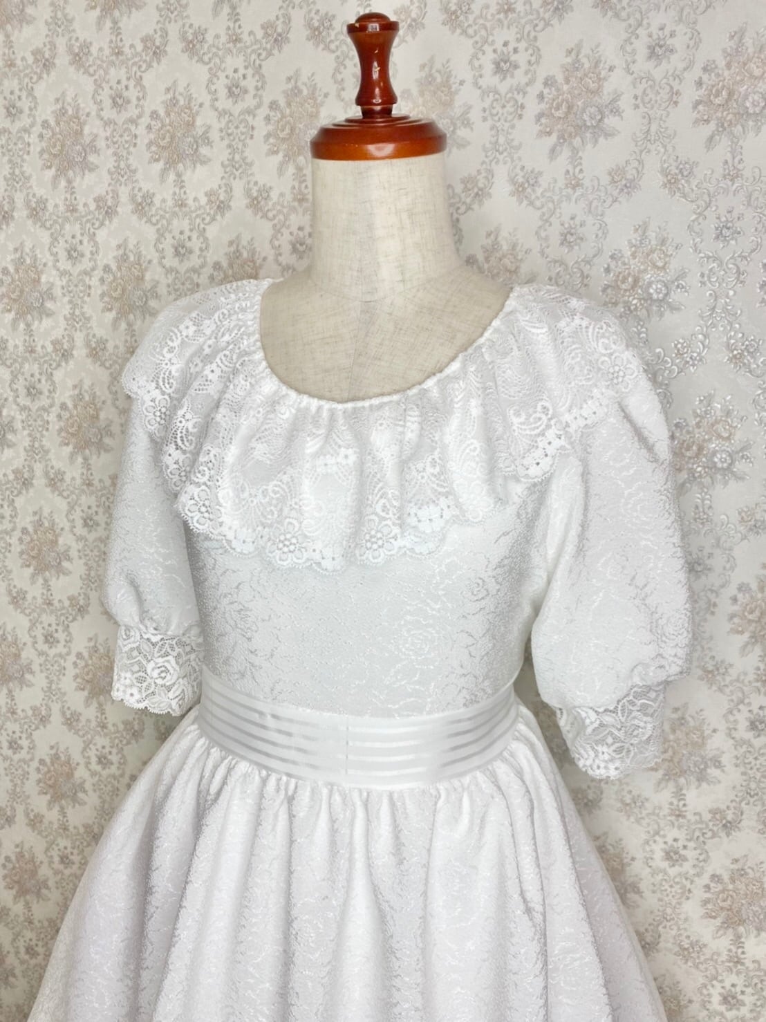 背中のレースリボンで上半身のサイズを調整できます。 リラックスしたい時は緩めに結ぶなどしてシーンに合わせた着用が可能です。 ※リボンコサージュは別売です。 サイズ:F 身幅96cm、ウエスト96cm 着丈114cm 素材: 表地 ナイロン100% 裏地 綿40% ポリエステル60% 説明文をよくお読みのうえご購入をお願い致します。 ※商品はアトリエでのオールハンドメイドで制作しております。 ※ 商品はご注文から約1〜7営業日以内に発送致します。
