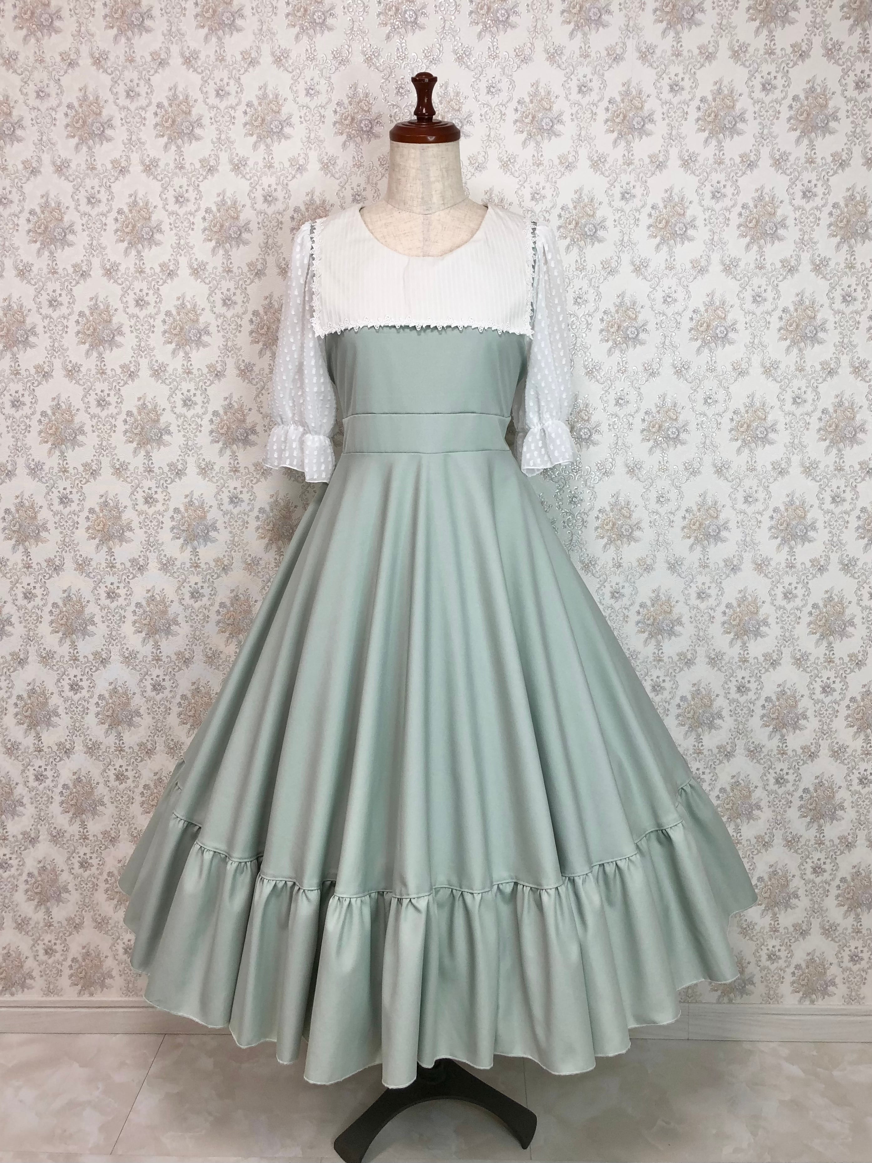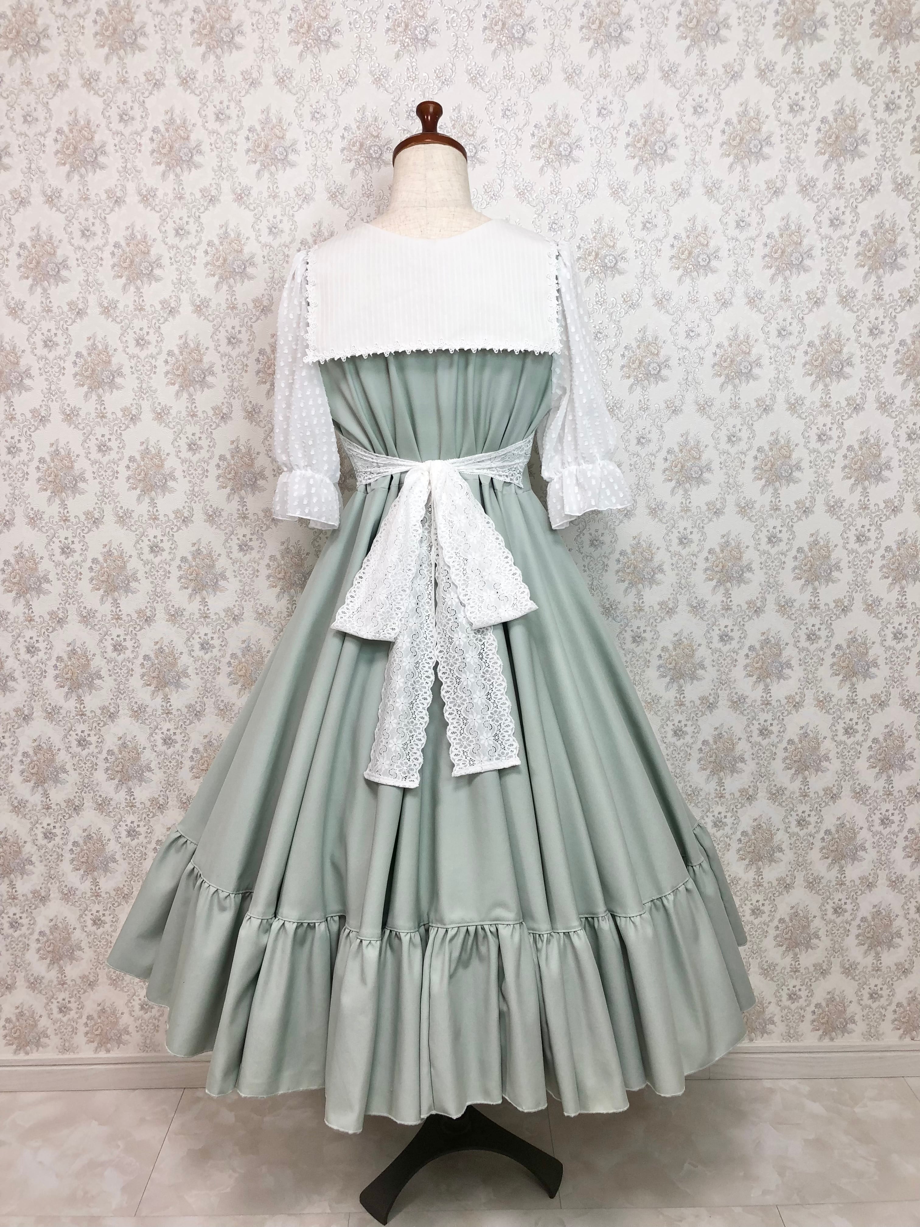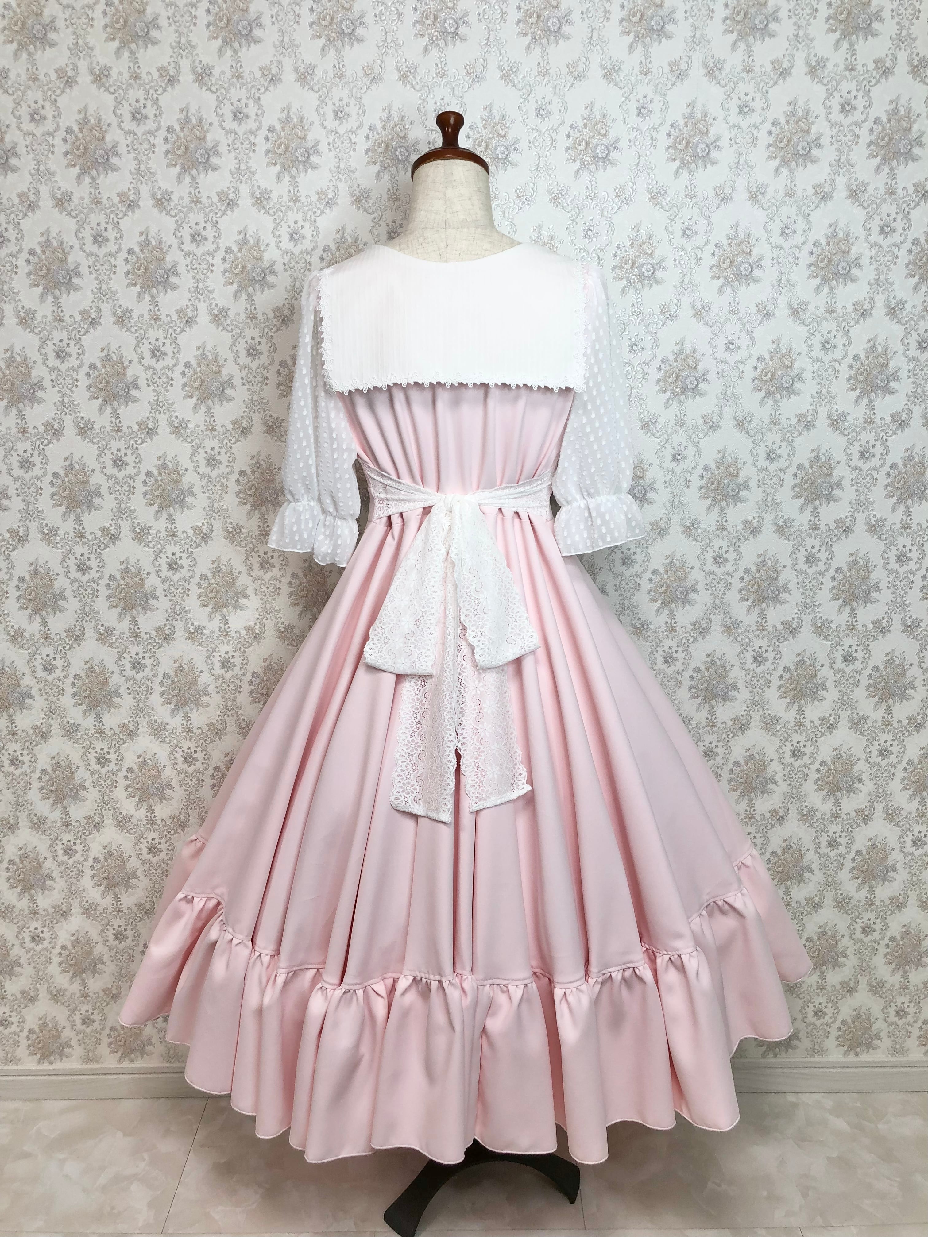 印象的なスクエアカラーのセーラーが可愛いワンピースです。スカートは全円になっており、シンプルの中にも豪華さがあります。