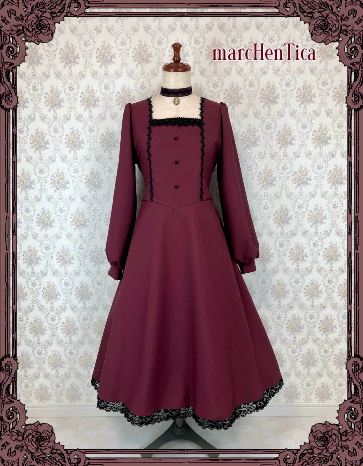 アダリンワンピースは、ボルドーに黒のコントラストが美しいワンピースです。