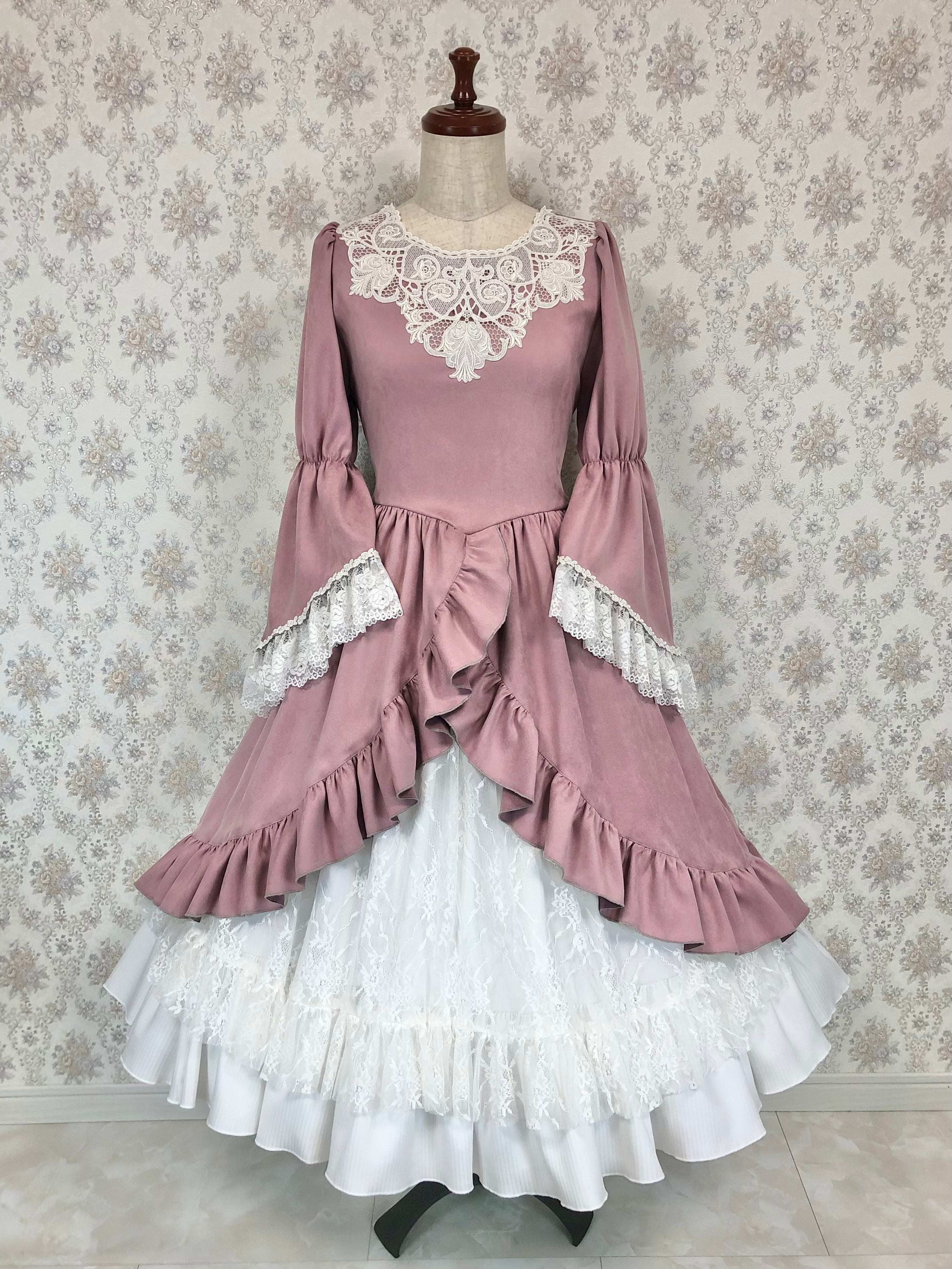 ビスクドールオーバードレスとペチコートを1着のワンピースに仕立てたものになります。
