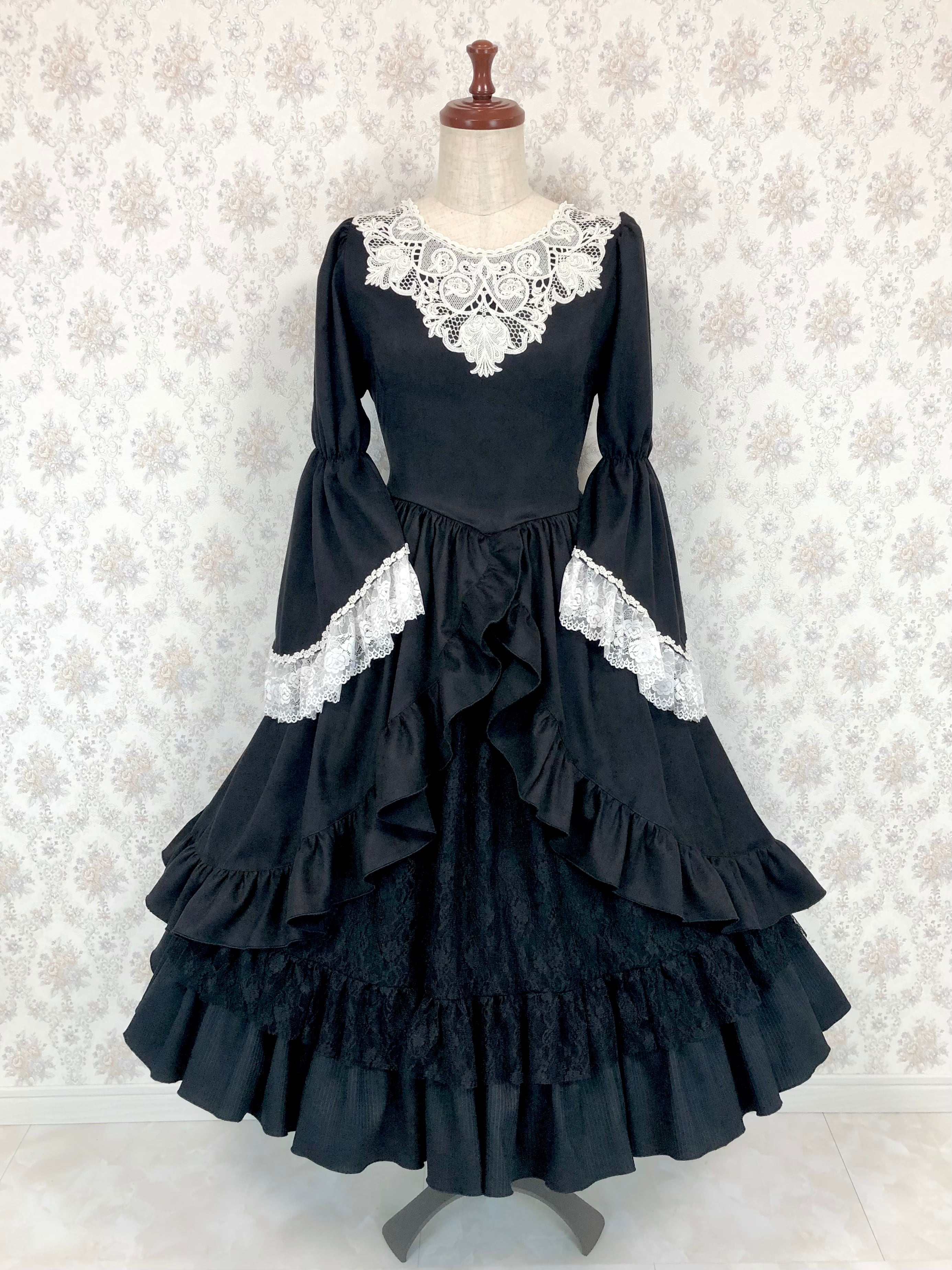 胸元のレースが繊細で、姫袖が豪華です。
