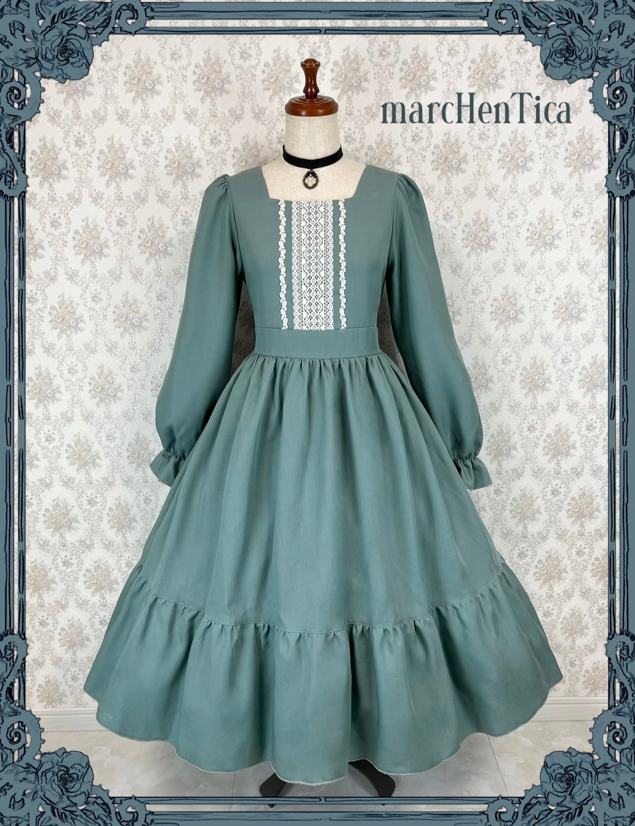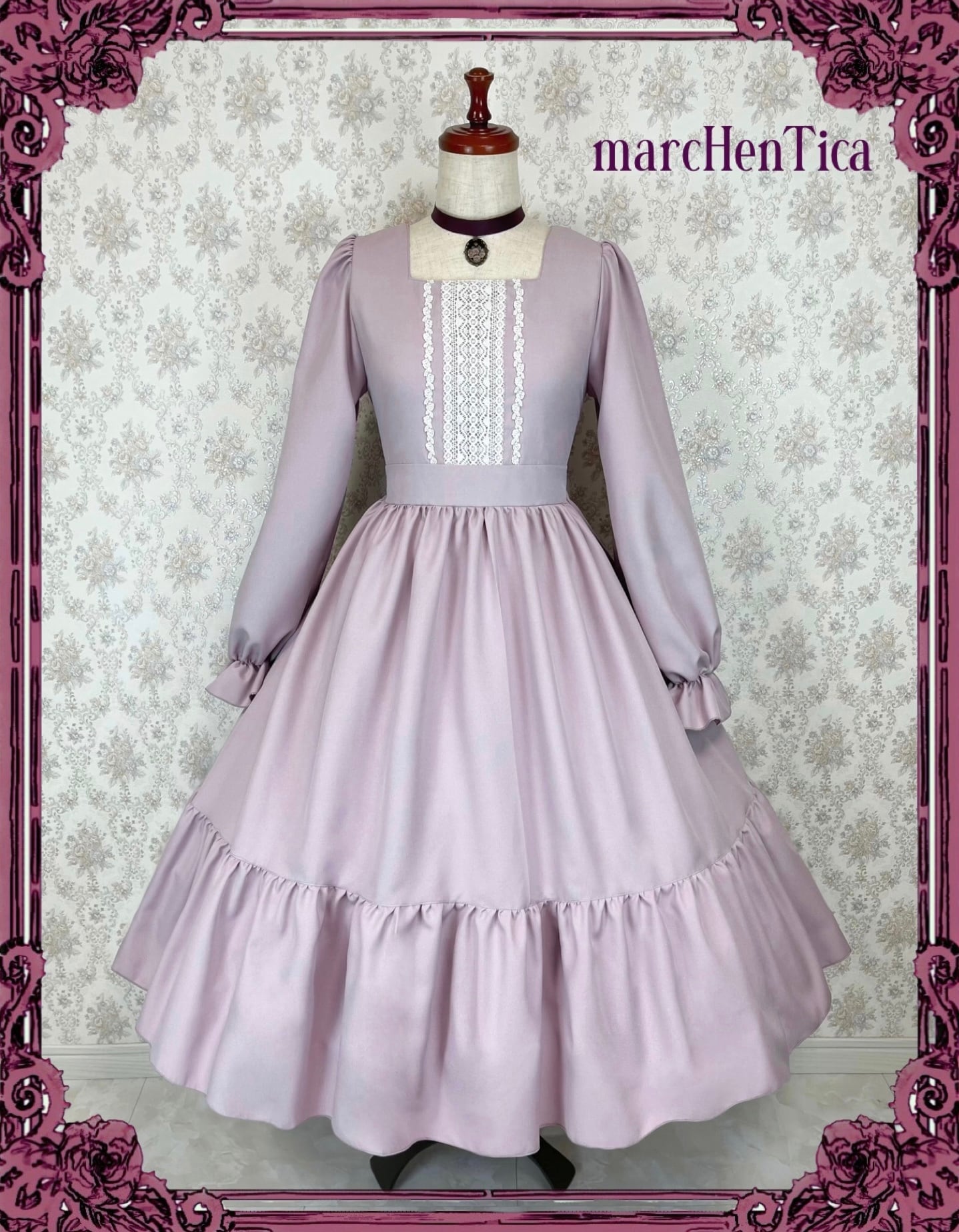アリアンヌ・クラシックワンピースは、胸元のレースが上品なスクエアネックのティアードワンピースです。