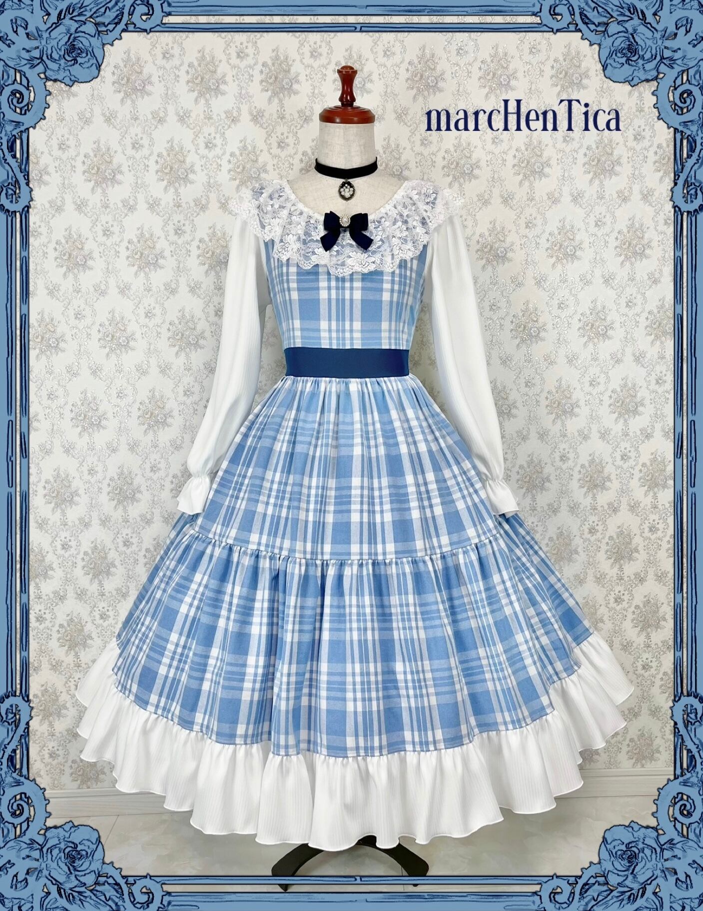 フレアヒラリーワンピースはネイビー×白、水色×白の大きめチェック柄が爽やかな、大人かわいいワンピースです。